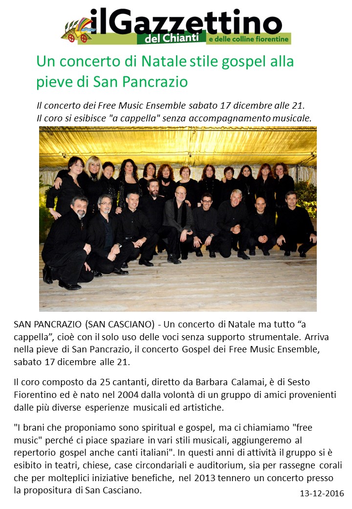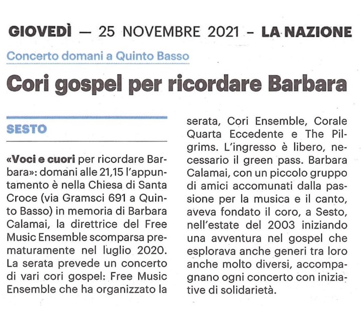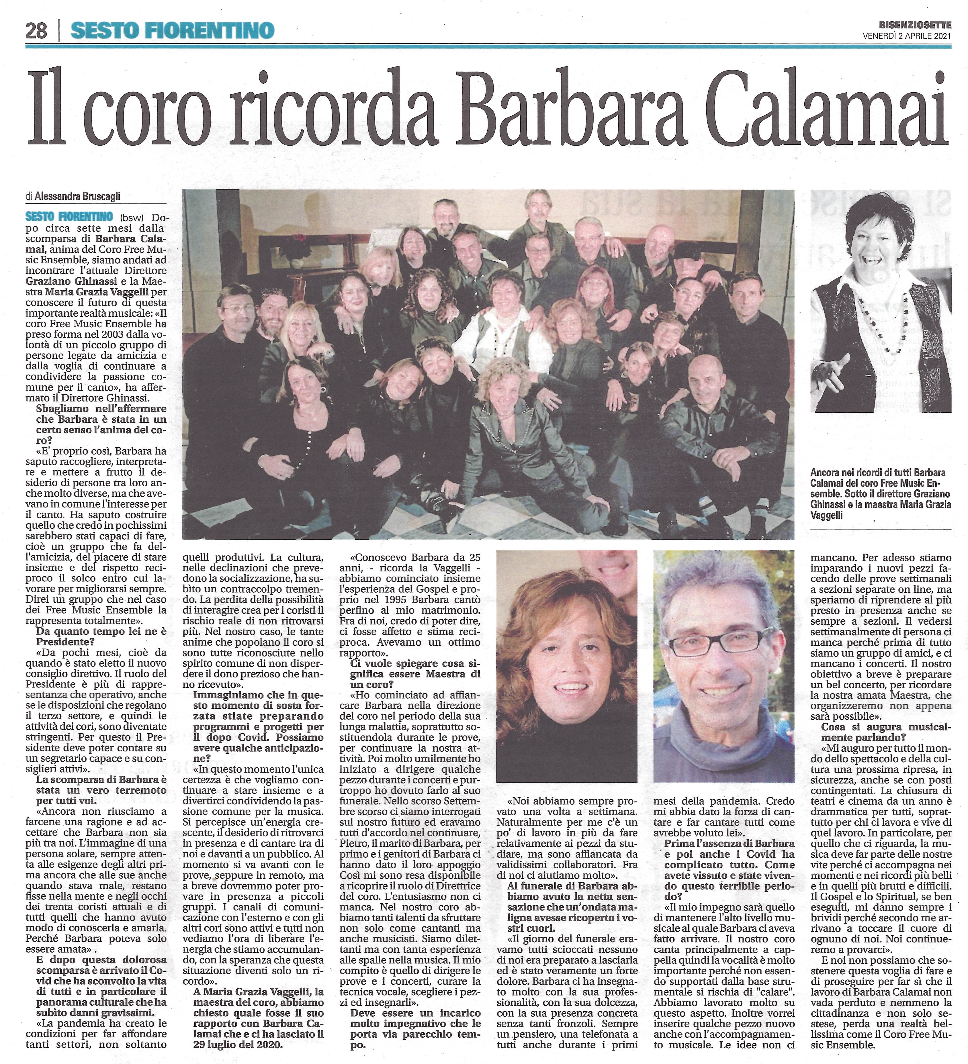 Il Coro Free Music Ensemble è nato nel 2004, sotto la direzione artistica e musicale di Barbara Calamai,dalla volontà di un gruppo di amici provenienti dalle più diverse esperienze musicali e artistiche.