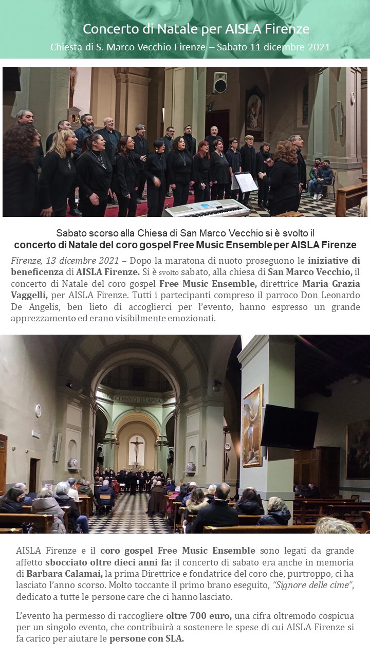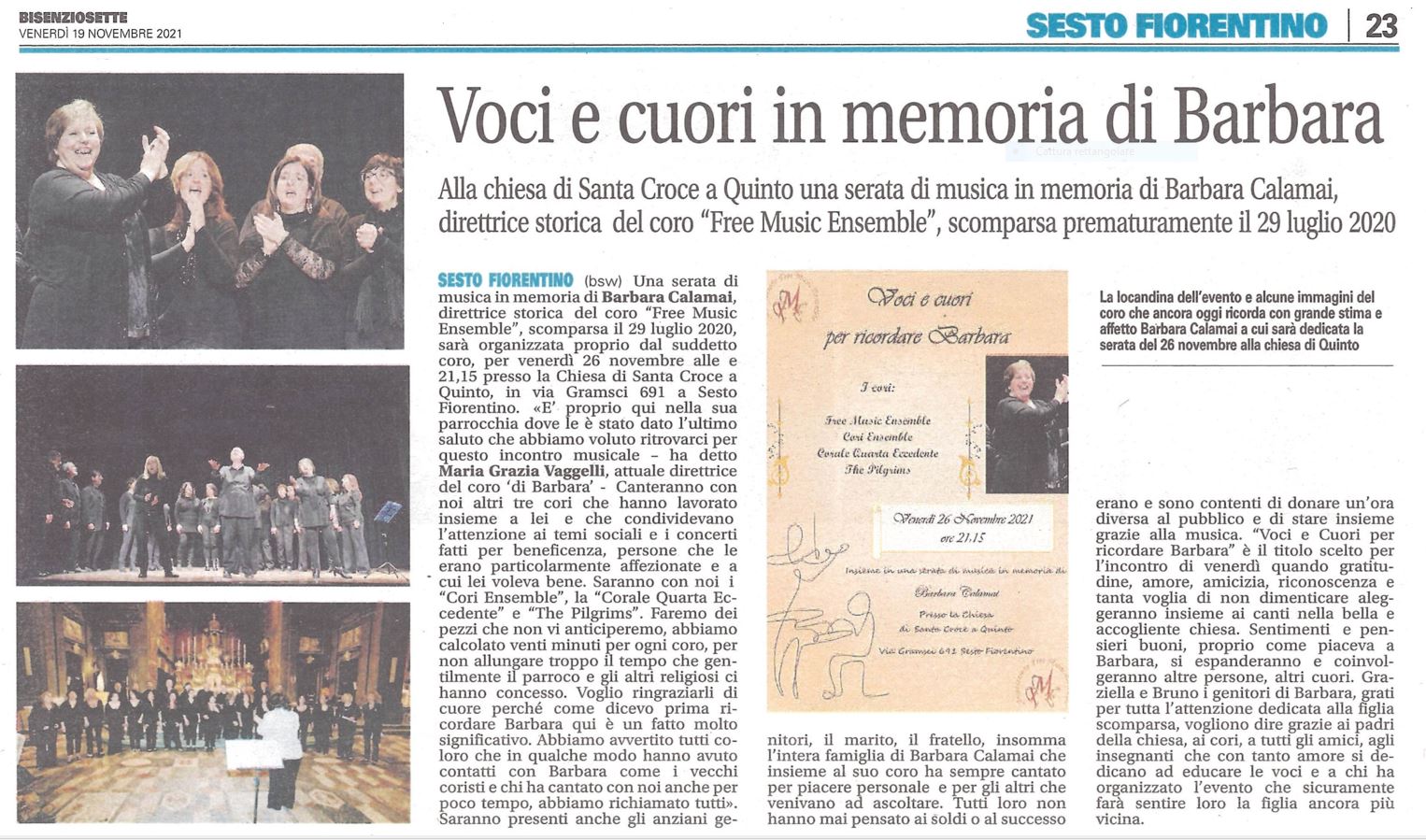 I suoi coristi e tutti coloro che l’hanno conosciuta e amata non potranno mai dimenticare le sue grandi doti umane ed artistiche. Forte del suo ricordo e dei suoi insegnamenti, il Coro proseguirà l’attività sotto la direzione di Maria Grazia Vaggelli che aveva già co-diretto gli ultimi concerti.